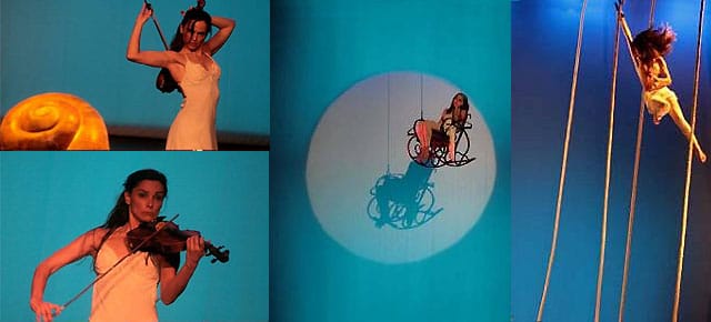 Coreografía aérea sobre telas verticales. Fura se inspira en el rico universo de J.L. Borges, para la creación de este espectáculo. La Casa de Asterión, es el cuento de este escritor, que da las imágenes para este espectáculo aéreo.