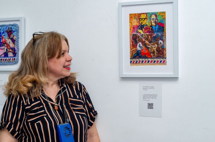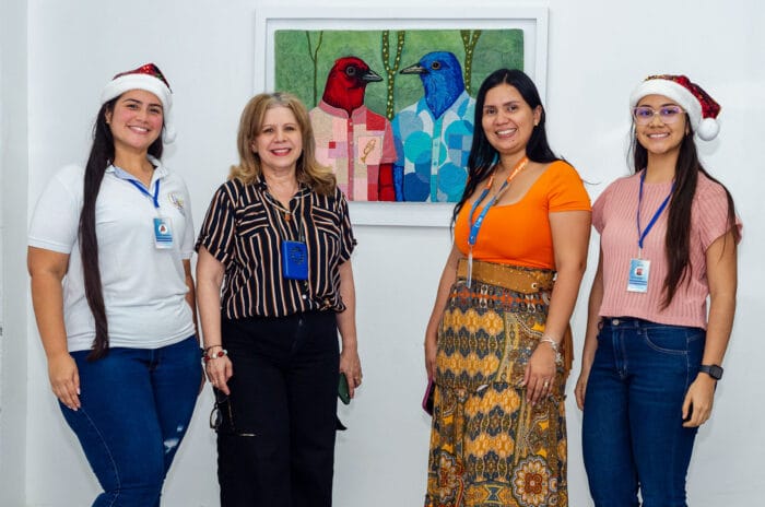 Mary Navarro es una artista destacada por su originalidad y siempre sorprende, esta vez expone sus cuadros texturizados en la sede de la UNAD en Santa Marta.