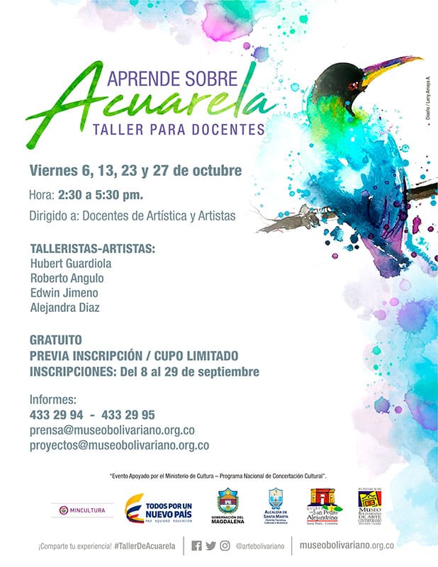 ‘Aprende sobre acuarela, taller para docentes’ hace parte de la programación del Museo que es un evento apoyado por el Ministerio de Cultura – Programa Nacional de Concertación Cultural y la Alcaldía Distrital de Santa Marta.