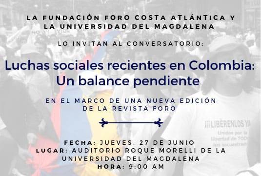 La Fundación Foro Costa Atlántica y la Universidad del Magdalena le invitan a participar del conversatorio "Luchas sociales recientes en…