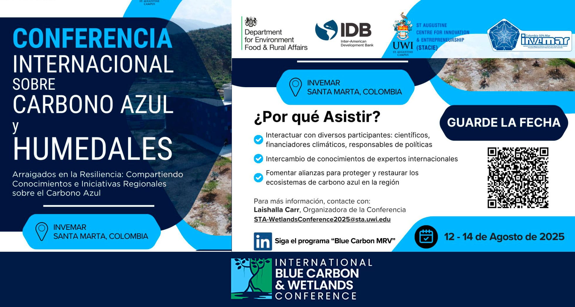 La Conferencia Internacional sobre Carbono Azul y Humedales (IBCWC 2025) es un evento regional emblemático convocado para acelerar estrategias científicas para la resiliencia climática en América Latina y el Caribe. Se celebrará del 12 al 14 de agosto en Santa Marta, Colombia, en formato híbrido, y reunirá a destacados investigadores, coordinadores nacionales y responsables de la toma de decisiones costeras para compartir conocimientos y alinear esfuerzos en torno a la protección y gestión sostenible de los ecosistemas de carbono azul—manglares, pastos marinos y marismas.