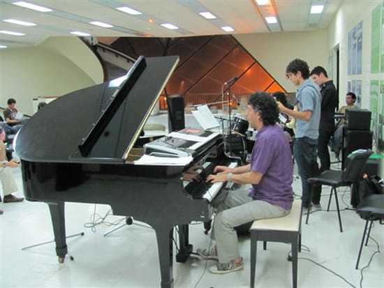 Germán Sandoval compositor y ejecutante de la percusión en su concierto en Santa Marta