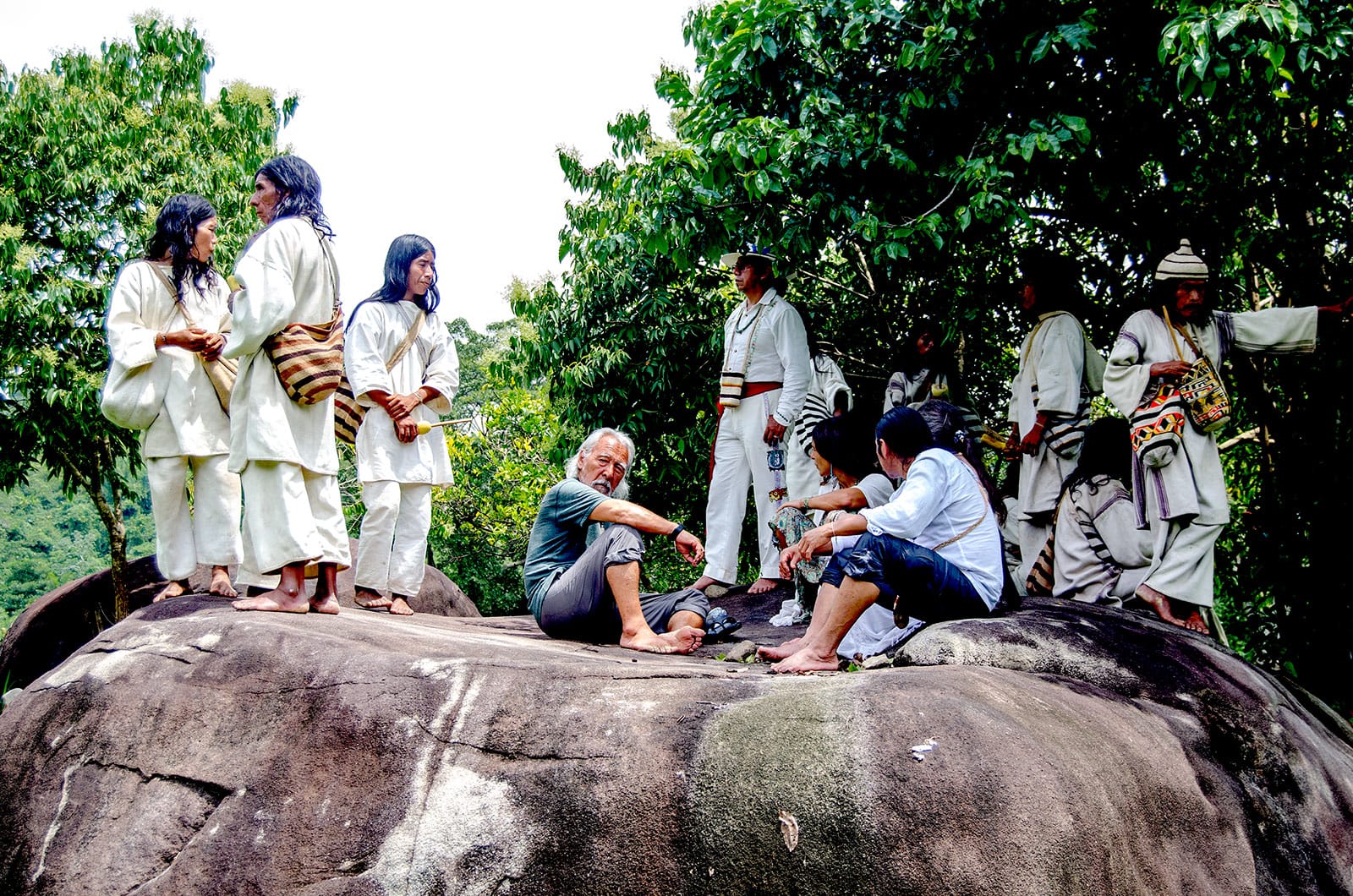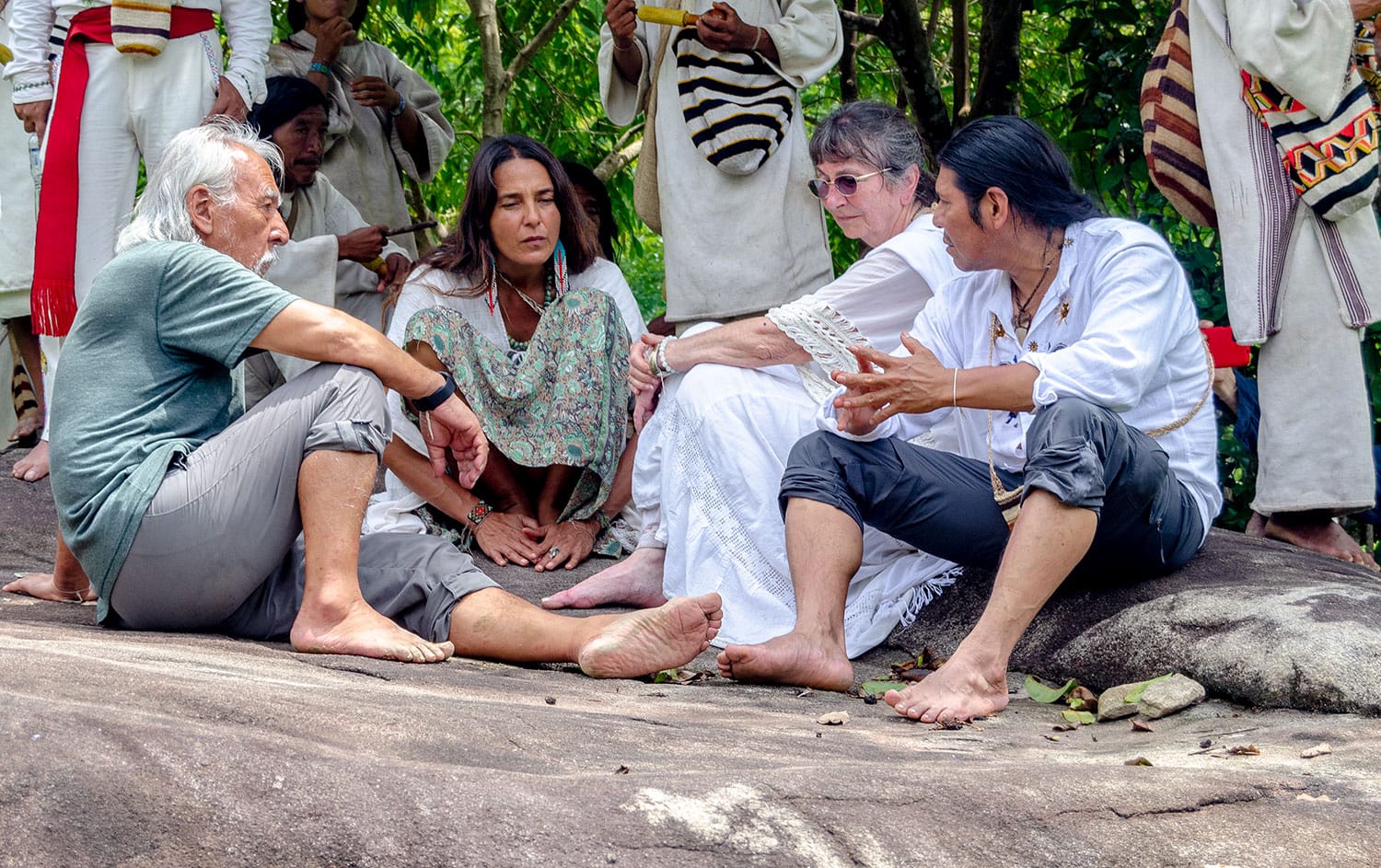 Cinco líderes espirituales de las naciones originarias de LA DELEGACIÓN DE LA MADRE TIERRA DE NACIONES ORIGINALES UNIDAS junto con La Fundación Kandzibulu – Nativa; estructura intercultural integrada por los Mámas de la Ezuamas Calabangaca, Mungueja y Sezhua, Kággabas o Kogis, se encuentran en una ceremonia inédita de entrega de Bastones de Mando entre delegados originarios provenientes de México, Ecuador, Groenlandia y Estados Unidos; cuya misión es proteger la sabiduría que sostiene el mundo desde y en lo espiritual, cuidando el equilibrio del universo.