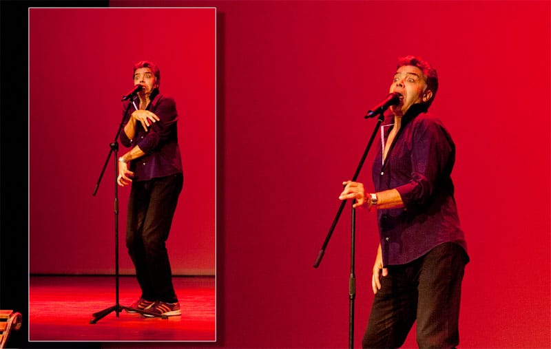 Comienza con su infidencia: “Un escenario como este -el Teatro Cajamag asusta”- y confesaba de esta manera ese momento cuando el actor se enfrenta al escenario lleno de público; tal vez sea esa la razón de las luces apagadas al comienzo con el público poco visible para el actor. Cuando este arranca, poco a poco el escenario se va iluminando y en los palcos se distinguen los espectadores, forman una unidad con el protagonista. En adelante comienza la química con los espectadores; las carcajadas impactaron a Luis Eduardo Arango, el veterano actor que vino a Santa Marta, son clara señal de comunión y de complicidad con sus ocurrencias: Se experimenta unión y clímax de energía que caracteriza un buen espectáculo actoral.