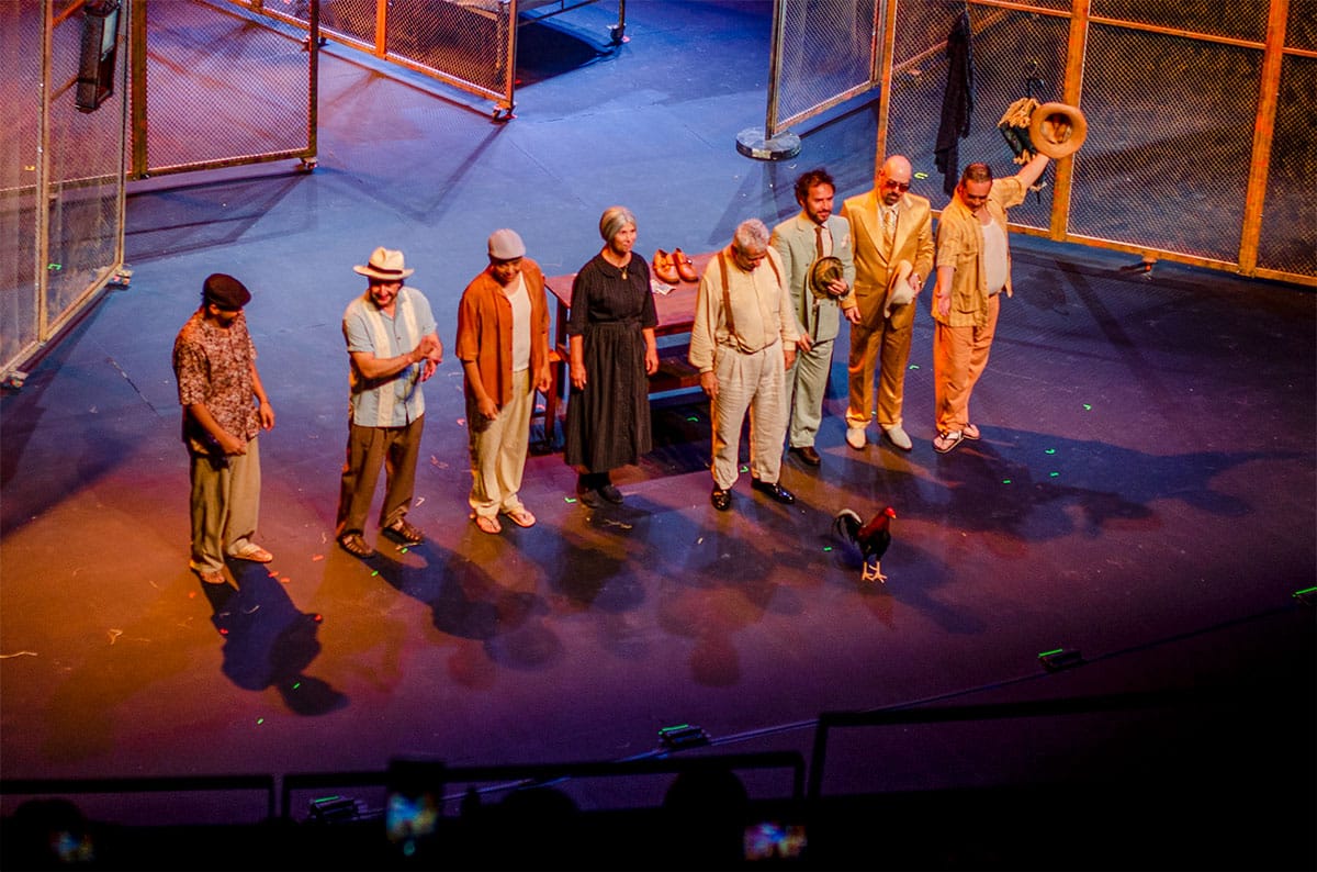 ¿Dónde estan los colores vibrantes del caribe, en la tribuna que asiste a la obra ? la que produce un aplauso sostenido y cálido que se incrementa por contagio y se escucha como el ventarrón que se aproxima en la hojarasca y arrastra todo.