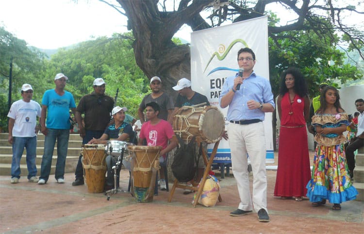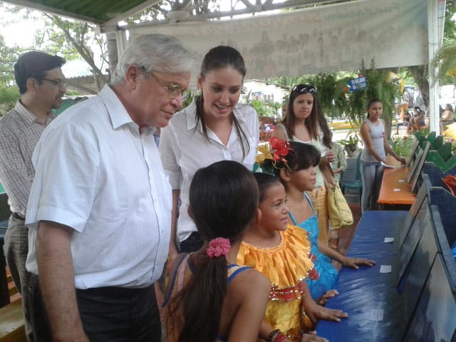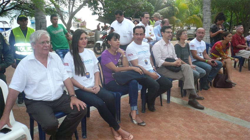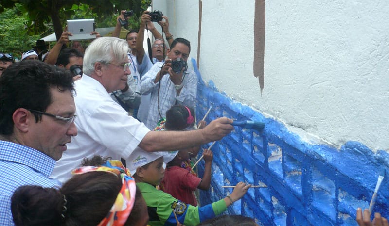 El Alcalde Distrital Carlos Eduardo Caicedo en compañía de Joan Clos, Secretario General Adjunto de las Naciones Unidas y Director Ejecutivo de ONU Hábitat y Taliana Vargas, representante de la Fundación Casa en el Árbol y Embajadora de Buena Voluntad de ONU Hábitat, realizaron hoy martes 8 de octubre un recorrido por las 4 calles que están siendo intervenidas y participaron en las actividades paralelas de pintura, con la realización de un mural en la Escuela de Taganga con la participación de los jóvenes de la comunidad. El objetivo de la actividad es mejorar el aspecto arquitectónico, urbano y paisajístico de Taganga, al mismo tiempo que se fortalece el arraigo social, cultural y ambiental de sus habitantes.
