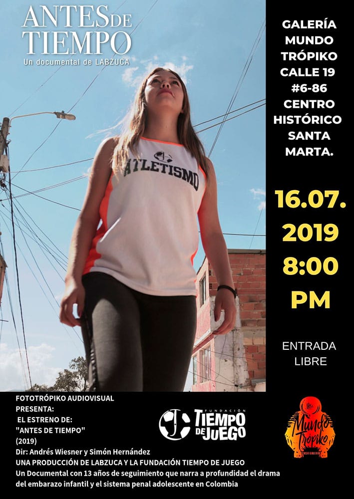 La Casa Galería Mundo Trópiko y la Fundación Tiempo de Juego invitan al estreno en la ciudad de Santa Marta del documental “Antes De Tiempo” una producción de LABZUCA
