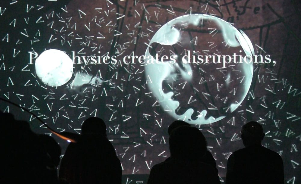 Explico que al mismo tiempo, el espacio de las actuaciones queda integrado en el performance, “este se usa gracias a su potencial de cuerpo de sonido y de proyección. El grupo presenta dos filmes en tiempo real generados durante la actuación”.